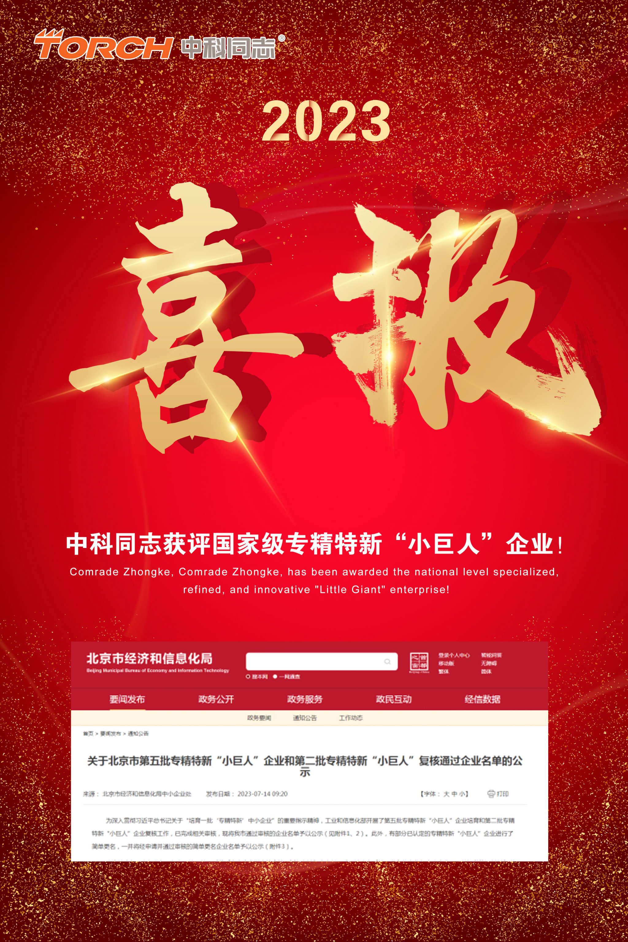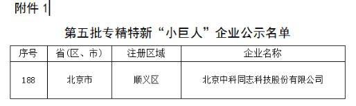 在最新发布的第五批专精特新“小巨人”企业名单中,中科同志凭借其卓越的技术实力、创新能力和市场表现,成功上榜并脱颖而出。