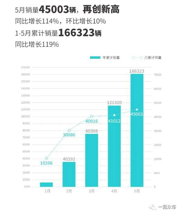 5月蔚来汽车交付6155辆新车,环比下滑7.6%,同比去年同期7024辆下滑12.37%。2023年1-5月份蔚来汽车累计交付新车43854辆,同比增长15.8%。截至2023年5月24日,蔚来汽车累计交付量达333410辆。
